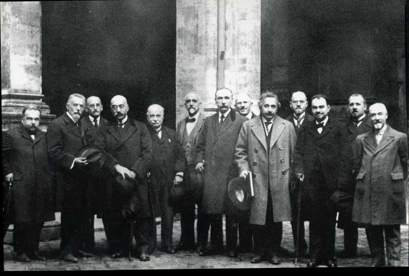 Einstein, Enriques e altri nelle logge dell'Archiginnasio. [Archivio storico, Casa editrice Zanichelli, Bologna].