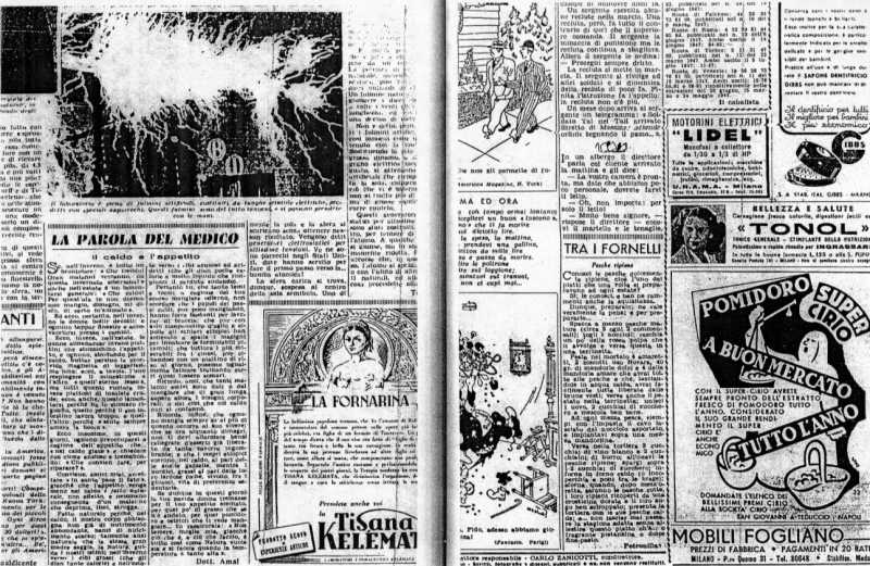 Una pagina del settimanale 'Domenica del Corriere' del 20 luglio 1947, nel quale compariva il necrologio di Amalia Moretti Foggia e le sue ultime rubriche. [Dall'Ara, 1998, p. 114-115]