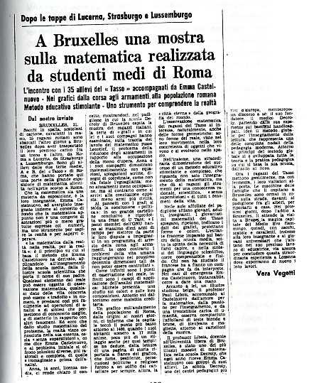 Frontespizio di un articolo sull'esposizione matematica realizzata a Bruxelles da studenti romani nel 1974. [Vegetti, 1974].