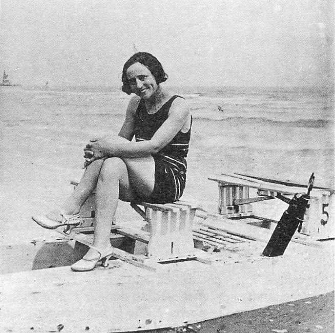 Isotta Gervasi in spiaggia. [Ricci e Gagliardi, 1998, p. 117].