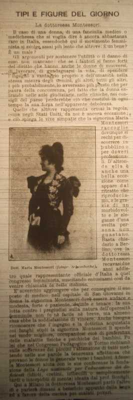 Articolo su Maria Montessori tratto dalla Domenica del Corriere del 19 Febbraio 1899.
