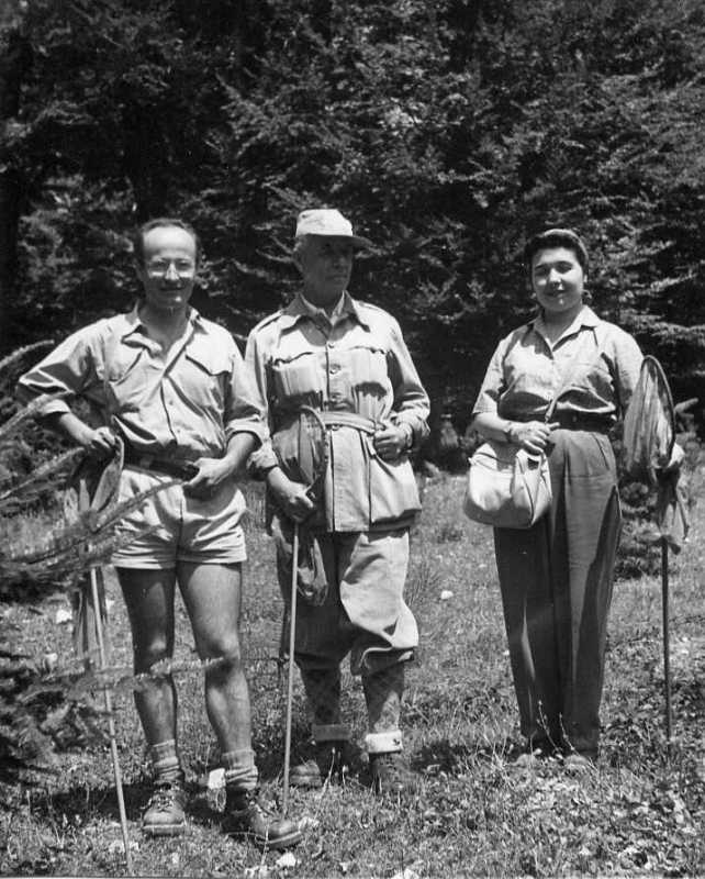 Maria Matilde Principe con Guido Grandi (centro) e Egidio Melini a Frusta Umbra nel 1955. Con permesso di M.M. Principi.