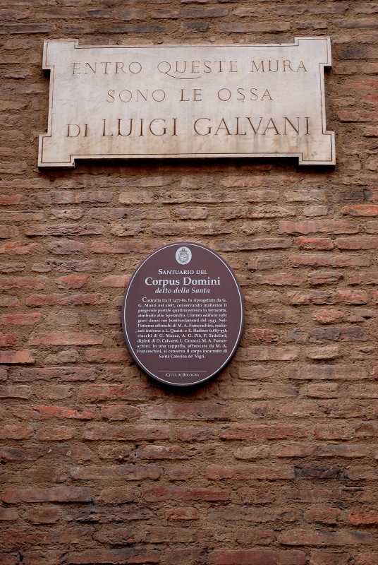 Lapide posta all'entrata del Corpus Domini in via Tagliapietre a Bologna.