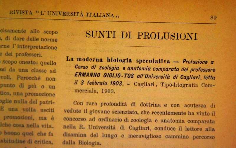 Sunto di Prolusione scritto da Elisa Norsa e pubblicato su l'Università Italiana.
