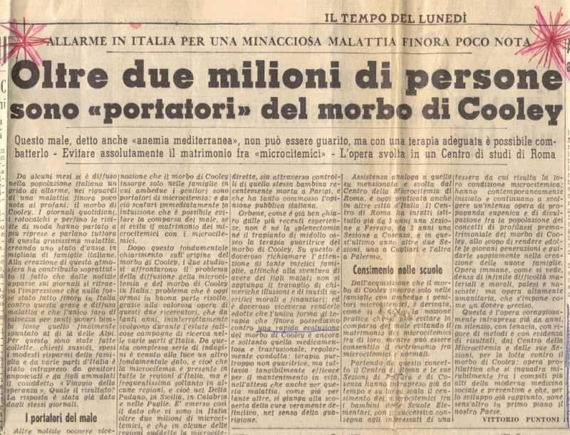 Articolo de 'Il Tempo del Lunedì' sulle talassemie. [I. Bianco SIlvestroni, 2002]