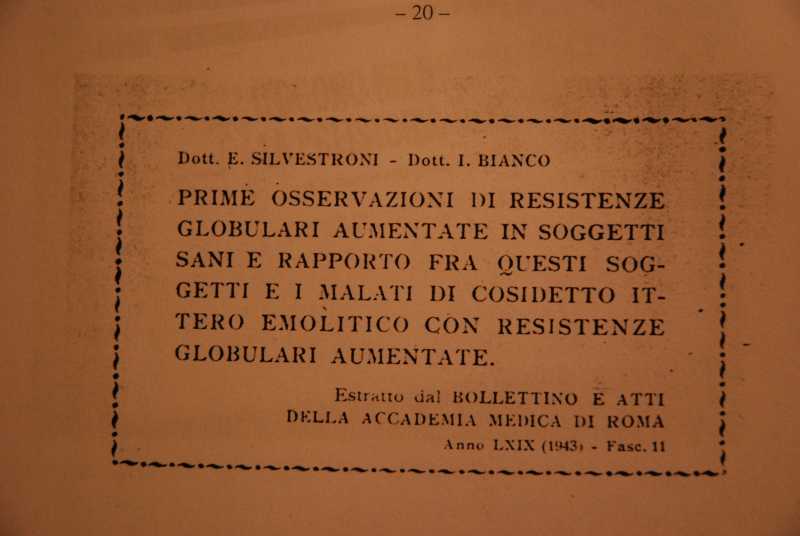 Articolo presentato da I. Bianco ed E. SIlvestroni all'Accademia Medica di Roma, 1943.