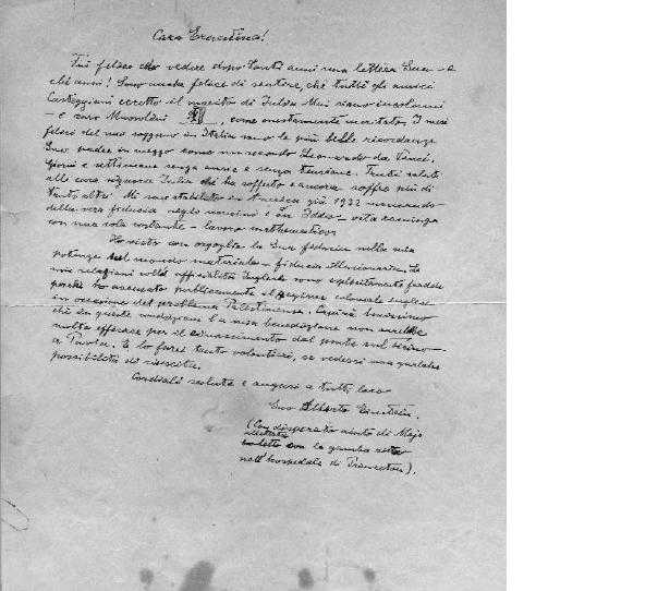 A. EInstein a E. Marangoni 16 Agosto 1946. [Fregonese, 2005, p. 34].