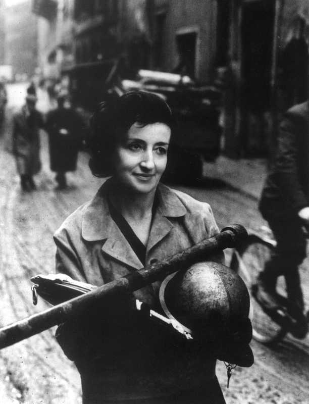 Maria Luisa Bonelli durante l'alluvione di Firenze del 1966. [Istituto e Museo di Storia della Scienza, Firenze].