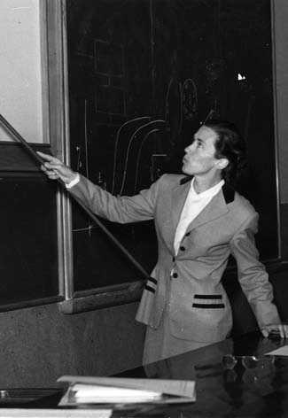 Daria Bocciarelli parla durante il 1° Congresso Nazionale della Società Italiana di Microscopia Elettronica, inaugurato a Roma il 4 maggio 1957 [G. Donelli 2008, p. 26]