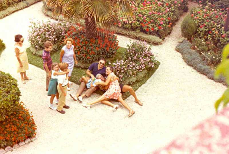 Emma (prima a sx.) a Palombina, nel giardino della villa dei cugini Pincherle, alla fine degli anni ’60. [Archivio privato, Dr. Maurizio Pincherle].